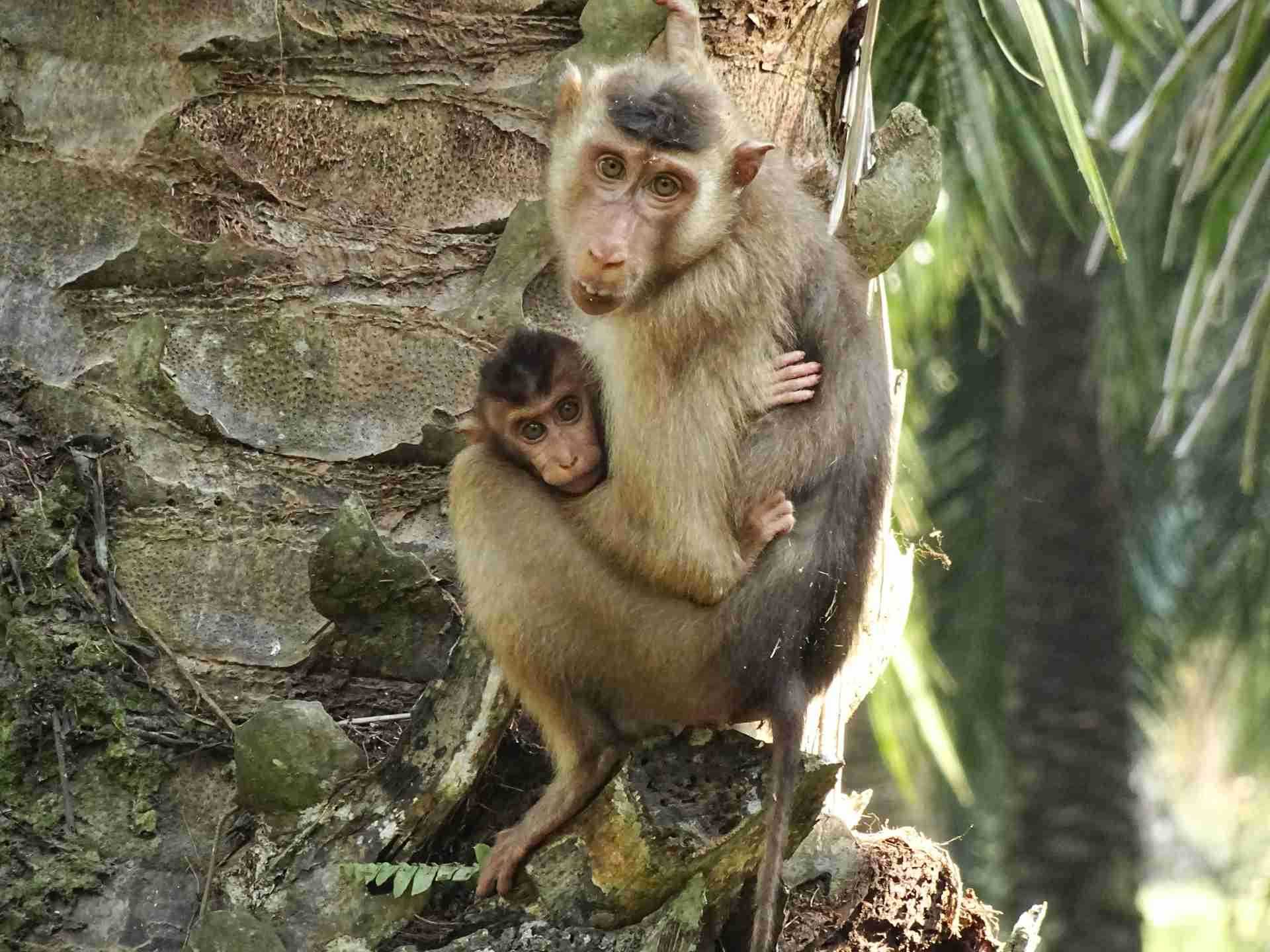 Das regelmäßige Aufsuchen von Palmölplantagen führt zu einer deutlich erhöhten Sterblichkeitsrate unter jungen Südlichen Schweinsaffen (Macaca nemestrina) in freier Natur. Das zeigt eine neue Studie, die in Current Biology veröffentlicht wurde. Die Forscherinnen begründen dies mit einem höheren Risiko durch Raubtiere und den Menschen. Auch der Kontakt mit potentiell schädlichen Chemikalien, die in der Landwirtschaft zum Einsatz kommen, könnte die Entwicklung der jungen Primaten beeinträchtigen.
